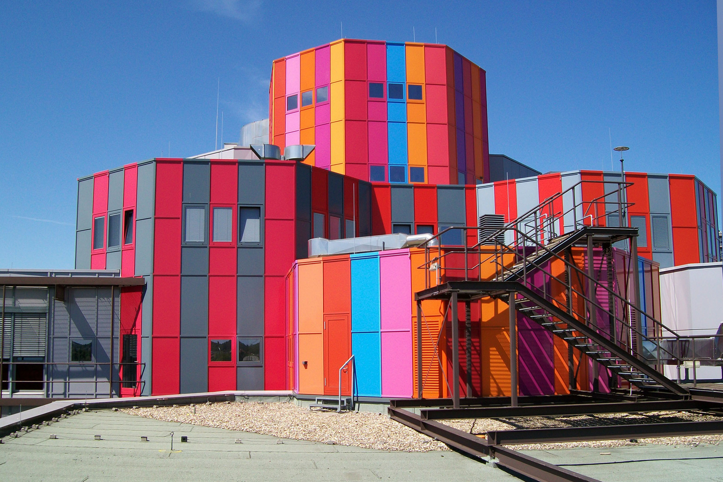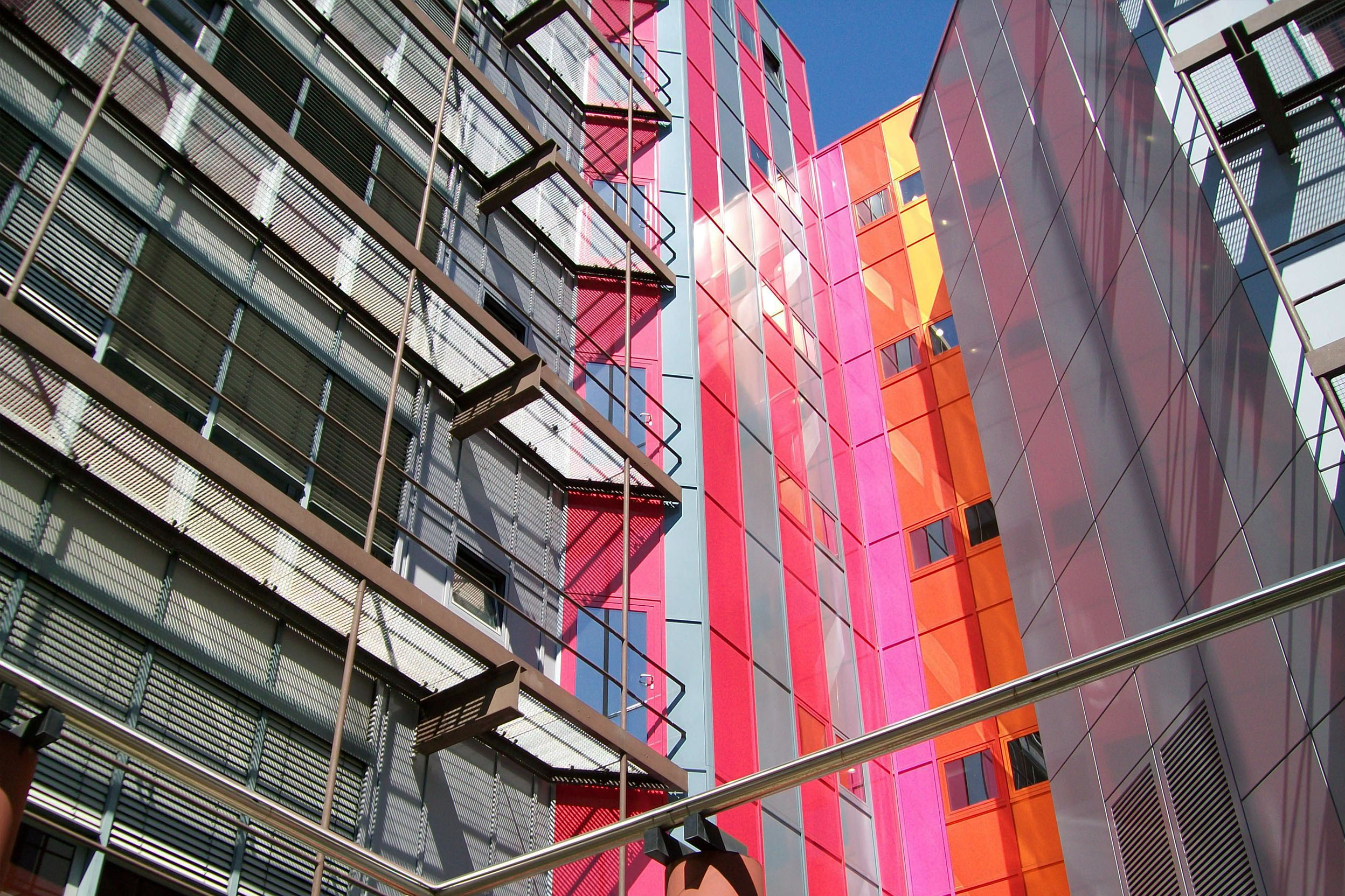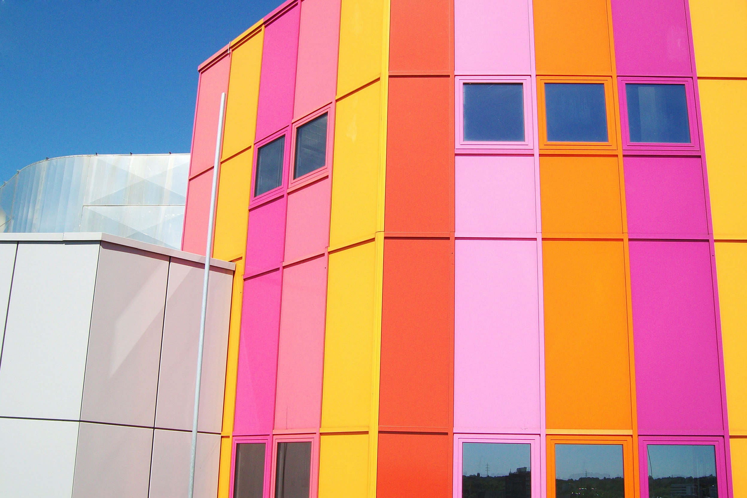 Das Konzept für die farbige Umgestaltung der Fassade entwickelte der Düsseldorfer Künstler Horst Gläsker.